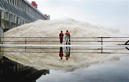三峡大坝夏季汛期泄洪的壮观场面。(摄于2010年7月)