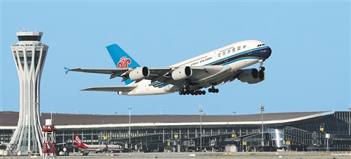 题图 9月25日,中国南方航空公司由空客A380客机执飞的CZ3001次航班从北京大兴国际机场起飞。新华社记者 鞠焕宗摄