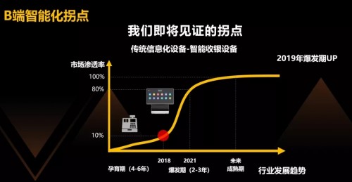 截止到去年财年,中国餐饮市场商户数量达到600万+,其中整体可被智能化的目标市场商户量达到250万,渗透率已达到10%。行业拐点已至,规模之战一触即发。2019财年结束后,中国本地生活SaaS化商家量将呈翻倍增长,市场渗透率将达到20%。
