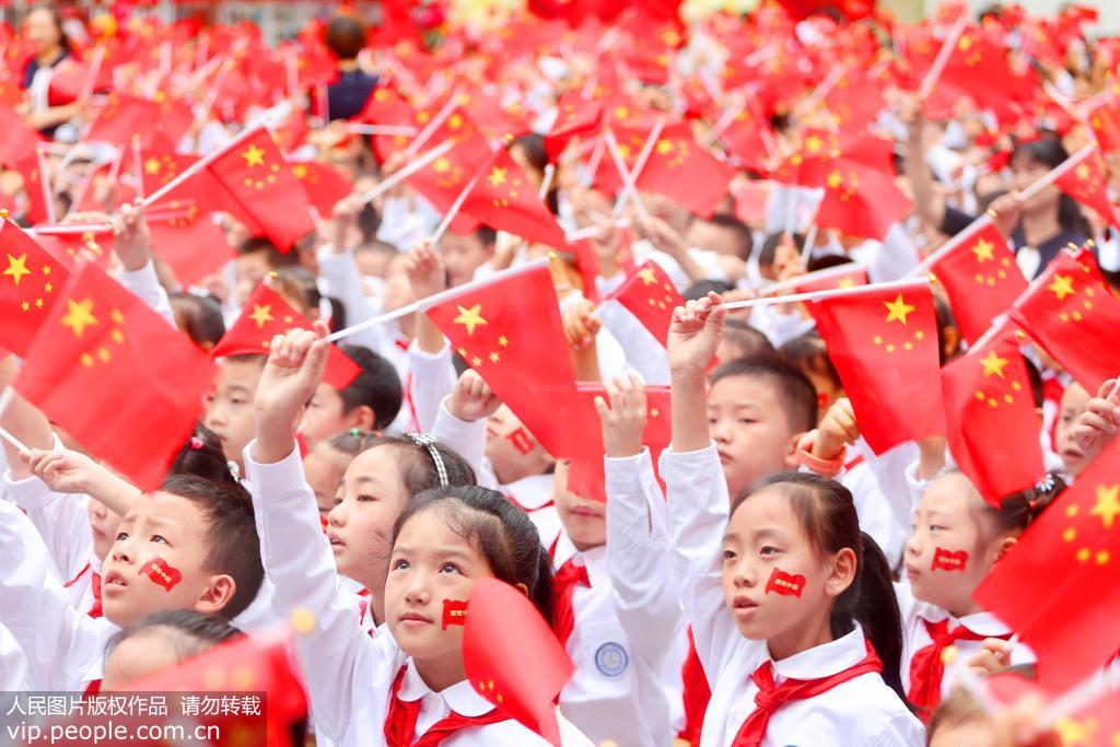 浙江省长兴县太湖图影中心幼儿园开展“我与祖国共成长”活动,组织学生们与国旗合影、歌唱祖国等形式多样的活动,来表达对祖国的热爱和对国旗的敬仰,喜迎新中国成立70周年。吴拯/摄