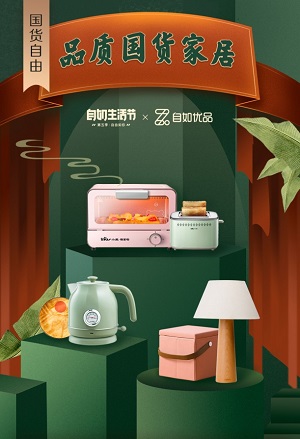 近日,由长租品牌自如发起的自如生活节第五季正在火热进行中,其中自如旗下的场景式精选家居生活电商平台“自如优品”联合小熊、物鸣、懒角落、述物、夜家居、美的、摩登主妇7大品牌,以精品国货为题,掀起一阵国货潮。