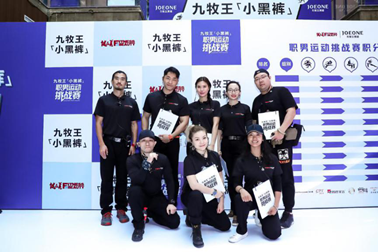 赛事汇集了来自北京各大企业的近百名职场男性参加,他们集体身穿九牧王【小黑裤】完成“职男5项赛事”。此项活动旨在通过国内首创的办公室趣味运动挑战形式,探索如何通过合理着装与适度运动,帮助职场男性释放压力、关注健康。