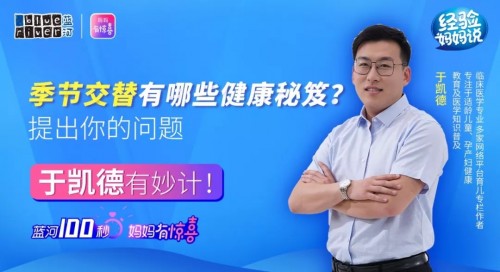 夏秋交替时节,带娃困扰集中在感冒、腹泻和各种皮肤问题上,家长要怎么带娃?蓝河100秒专家答疑日,上期主题“季节交替有哪些健康秘笈”,向大家征集换季带娃疑问,由超级奶爸于凯德为大家解答,快来跟着涨知识吧!