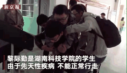 对于同学们的帮助,黎际勤很感动。“每次背他之后,他都会说很多感谢的话。”周耀辉说,黎际勤觉得有些愧疚,“他还是不好意思总是这么麻烦大家。”