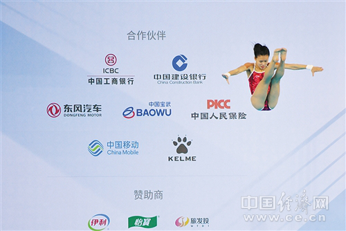 中国选手在军运会跳水女子10米台比赛中。这里既是竞技的赛场,也是中国企业展示的舞台。