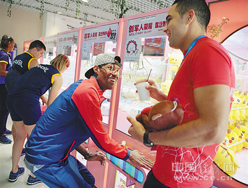 武汉市江夏区黄家湖畔的军运村休闲区,台球、电子游戏等服务项目为外国运动员在比赛之余提供休息放松的选择。