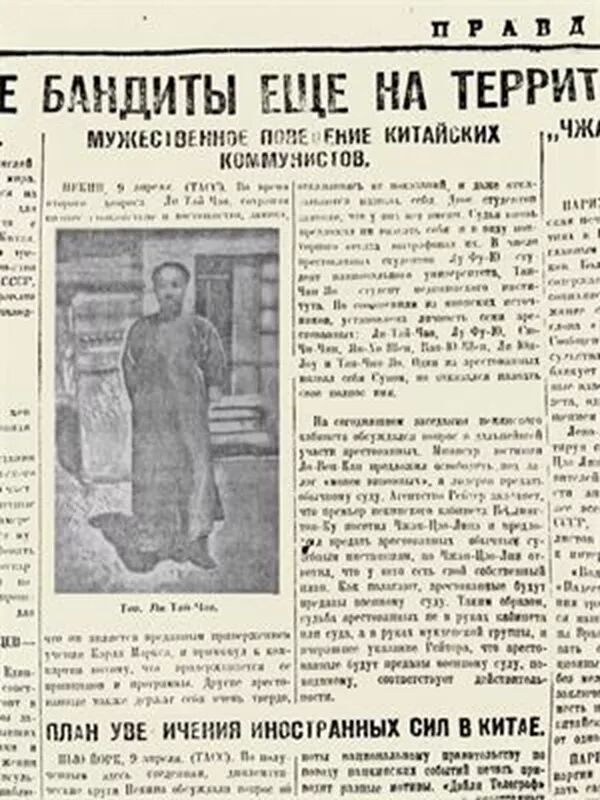 1927年4月9日塔斯社报道李大钊在狱中的英勇表现