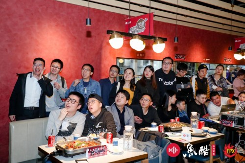 11月2日,位于上海三钢里的鱼酷店面内,热烈的气氛持续沸腾近四个小时。FPX粉丝们的尖叫声此起彼伏,在第四局FPX战胜IG时达到高潮,FPX进入S9全球总决赛,即将对战G2。