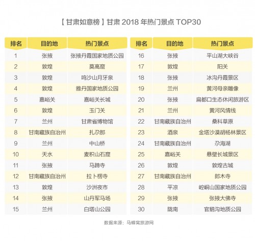 甘肃省一直以绝美的自然地貌和独特的丝路文化在中国游客群体中享有盛誉,兰州、酒泉、嘉峪关、张掖、甘南等地更是境内长线自驾游的必经之地。近日,马蜂窝旅游网联合甘肃省文化和旅游厅数据交换中心共同发布了一份《中国省域自由行大数据系列报告之甘肃省》(以下简称“报告”),这份报告基于马蜂窝旅游网及甘肃省文化和旅游厅数据交换中心大数据,对甘肃省旅游市场现状、旅游资源特色和未来发展趋势进行了深入剖析。