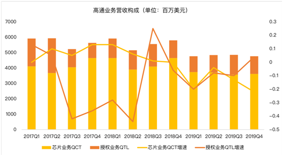 环比下滑主要是因为高通跟苹果在2019年4月16日达成和解,而和解带来了47亿美元的一次性收入,拉高了2019财年3季度的收入。
