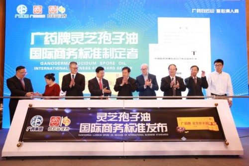 该标准牵头起草及主持制定的单位是广药牌灵芝孢子油的生产企业——广州白云山汉方现代药业有限公司。白云山汉方袁诚董事长说:“我们生产的灵芝孢子油,运用低温提取高速离心等系统集成优化专利技术,成功从破壁灵芝孢子粉中高倍萃取浓缩而成,其含有灵芝麦角甾醇、灵芝类三萜化合物等活性营养成分,由于高效的提取,更便于吸收,因此增强免疫力效果显著,目前已获得9项国家发明专利授权。这也是它能成为本次《财富》全球科技论坛指定礼品的原因所在。”