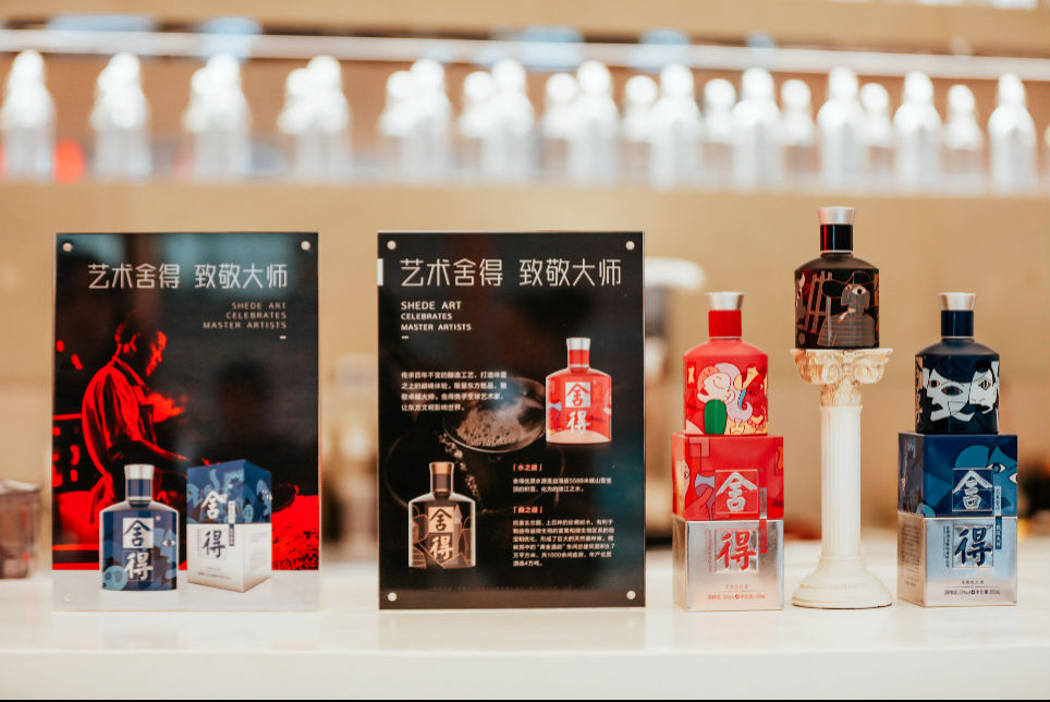 近年来,素有“文化国酒”美名的舍得酒业始终坚持在艺术领域的不断探索,并将这一品牌缔造模式升级为战略举措。除了打造《大国芬芳》、《舍得智慧讲堂》、舍得艺术中心、舍得博物馆四大自有IP,舍得酒业更全面步入艺术圈,持续参与各类艺术文化展览活动,成功建立起与艺术的强关系。而舍得酒业对艺术的创新表达不止于此,还联动不同的艺术家、IP等,用各类艺术元素对舍得酒外包装进行创作设计,打造出不同的主题联名款,构建全新产品体系“艺术舍得”。如本次活动中展出的“艺术舍得·致敬大师”系列小酒,将文化艺术元素从无形概念到有型产品载体的落地,立体式赋能舍得,构成一套独特的艺术形式。