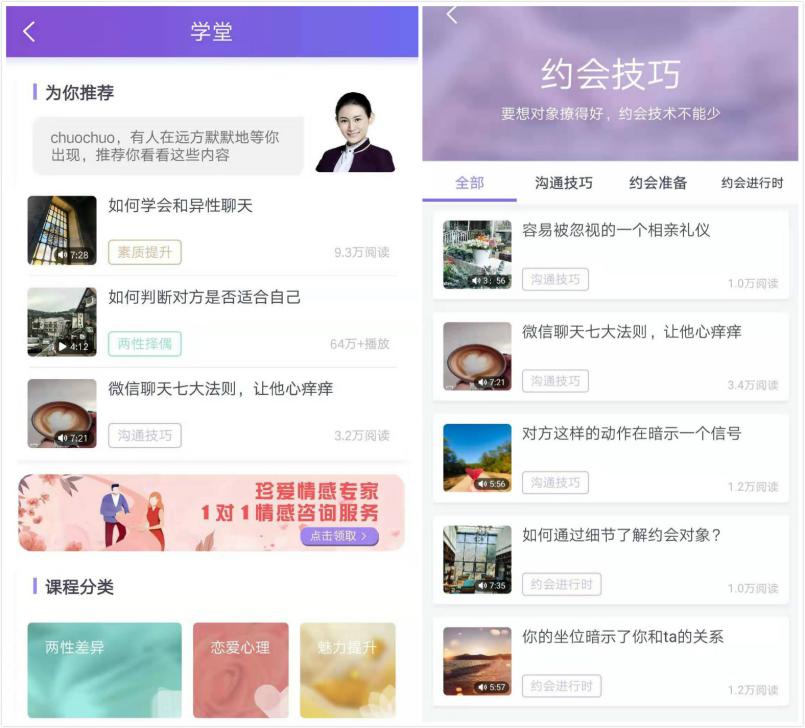 在相亲见面之前,可以事先了解对方的基本信息,包括工作、特长、兴趣爱好等,以免在聊天过程中出现无话可说、“尬聊”的局面,同时也能让对方感受到你的体贴和重视。此外,一些基本的相亲礼仪也可以适当了解,珍爱APP设置的“学堂”功能,包含“约会技巧”、“恋爱心理”等课程,能帮你解答“第一次见面是否应该握手”、“如何展现自己绅士的一面”等问题,让相亲过程更加顺畅无阻。