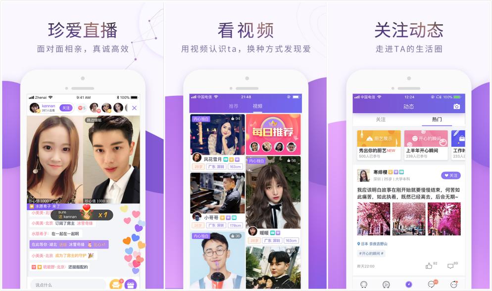雷区之外,工作忙没时间、没信心面基等问题也是单身男女脱单的绊脚石,相较传统的线下相亲,线上相亲早已凭借其高效、便捷的优势占领年轻用户群体的心。作为婚恋市场的佼佼者,珍爱APP早在2017年开创“直播相亲”功能,帮助用户足不出户即可“面对面”聊天相亲,节约时间成本,提高相亲效率。同时,用户还可以通过“短视频”、“动态”等功能进行趣味互动,丰富日常生活,扩展社交范围,让脱单更简单更高效。