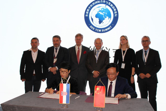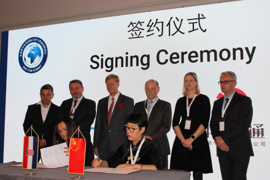 启动仪式结束后进行了签约仪式。世界中医药学会联合会陈立新副秘书长及中润华通签约代表、克罗地亚中医中心中方负责人张杰女士共同签署“世界中联-克罗地亚中医药中心合作谅解备忘录”,随后,张杰女士代表中润华通与飞兹奥维塔医院院长Anita Miškovic女士共同签署合作协议。
