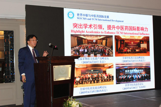 (世界中医药学会联合会副秘书长陈立新先生发表主题为“世界中医药发展:现状与展望”的演讲)