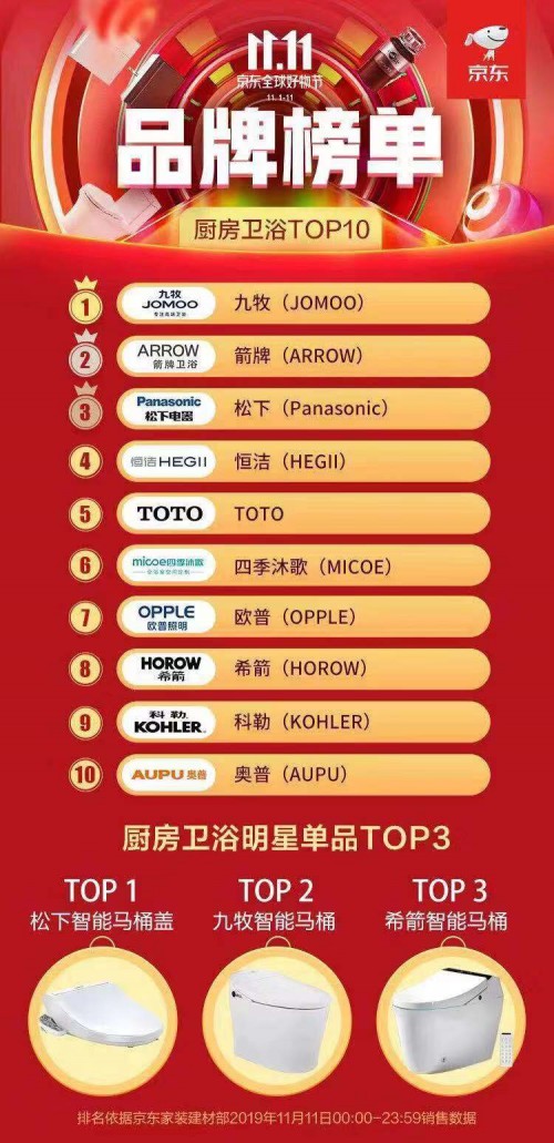 从11月11日零点开始,九牧的销售数据全线飘红,在智能马桶、浴室柜、厨房龙头、面盆龙头等核心品类斩获第一,刷新品类销售记录。