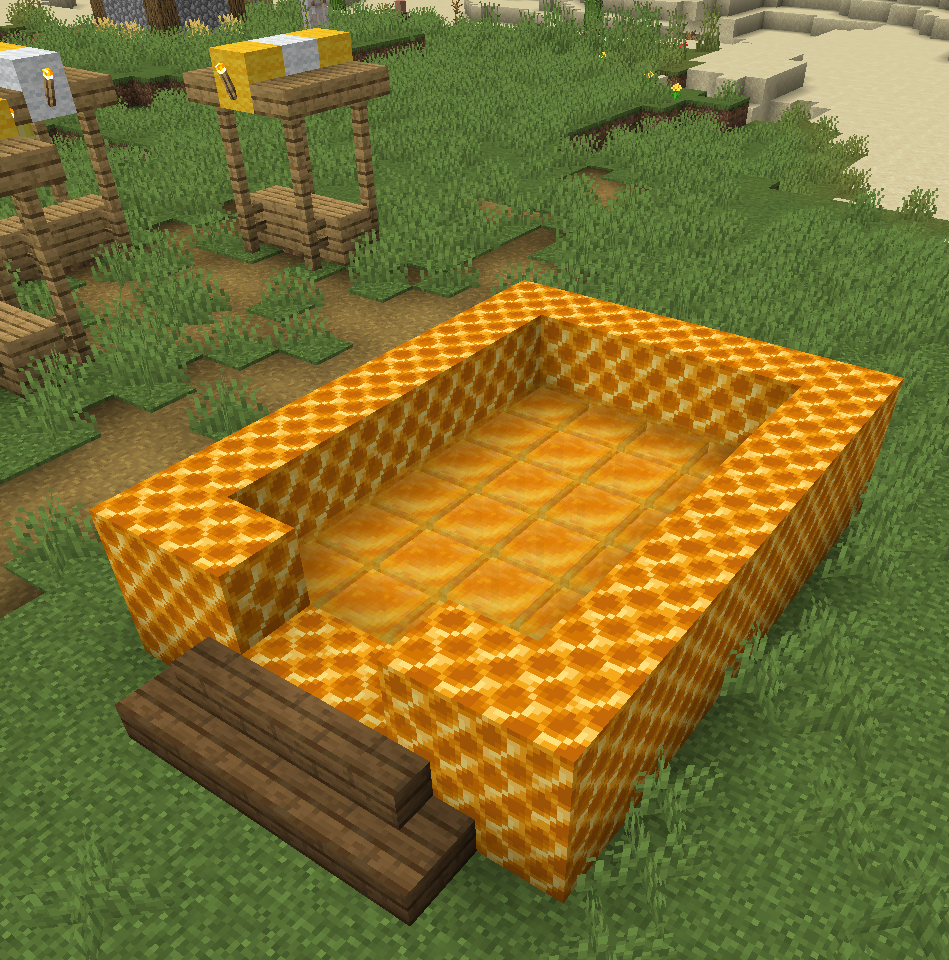 除此之外,还有特别的蜜蜂更新,蜜蜂、蜂蜜、蜂巢、蜂箱的引入,使得玩家们能够化身为“养蜂人”,生产漂亮的蜜脾与蜂蜜块,更好的装点自己的家园。