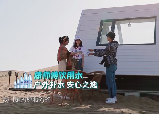 作为嘉宾的“安心后盾”,康师傅饮用水还在节目场景中全方位展示了它作为生活用水的多种规格。在准备餐饮的厨房场景中,频频出镜的是康师傅饮用水1.5L和2L的大瓶装,充分满足厨房大量供水需求。在干旱的沙漠场景中,嘉宾们旅途劳顿需要大量喝水,380ml和550ml的小瓶装以及兼具水量足、易携带属性的1L装,又成为了户外补水必备。多规格的多维度助力,让消费者看到了康师傅饮用水在生活用水带来的全面呵护。