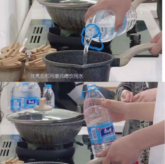 在紧张的节目过程中,作为安心管家的康师傅饮用水,无论是在厨房还是户外场景,都始终为嘉宾们提供水分补给。同时,通过多场景互动, 品牌自然融入与产品宣传,品牌与受众之间的情感联系也在无形中强化了。