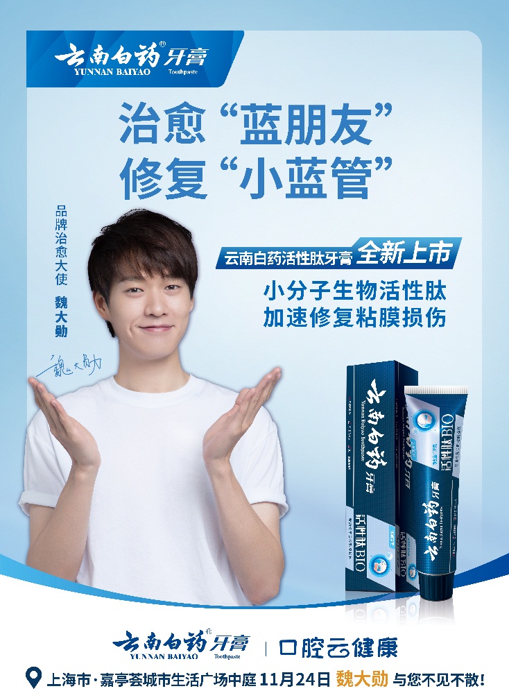 云南白药牙膏品牌治愈大使魏大勋将亲临活动现场,参与云南白药牙膏口腔云健康活力启动式,带来幽默Talk Show分享口腔护理心得,与观众们进行“美食大挑战”“挤牙膏”等游戏互动,用 “魏”蓝的笑容治愈心灵。