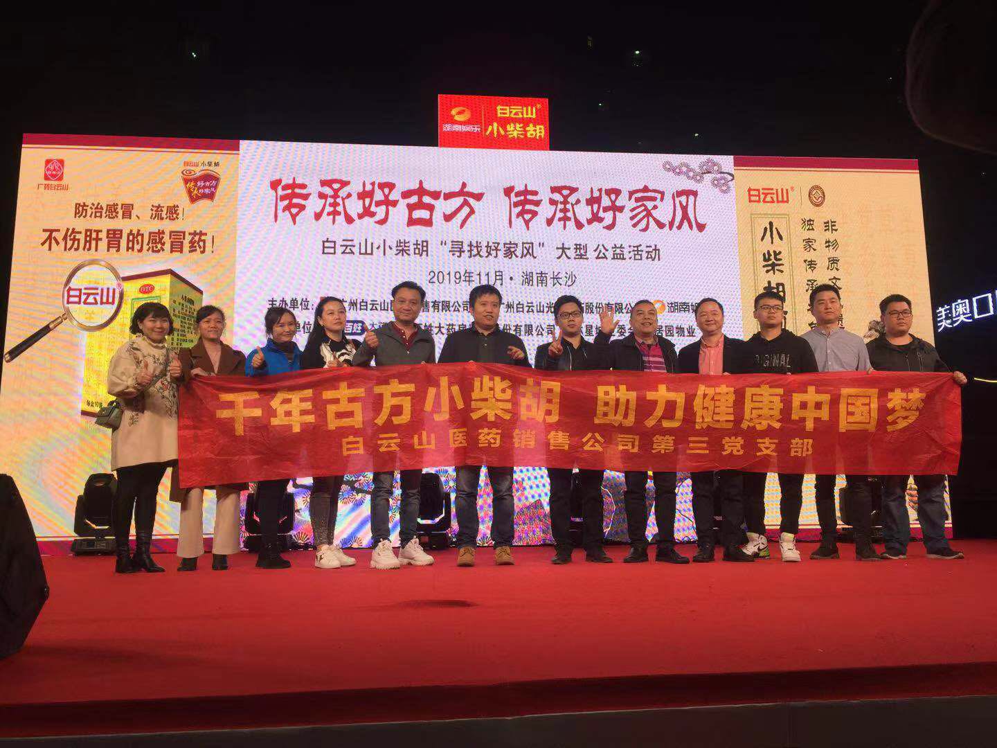 2019年11月23日,由湖南广播电视台娱乐频道携手白云山小柴胡共同举办的——“传承好古方,传承好家风”大型公益活动在长沙岳麓区金星中路格林星城隆重举行。为了更好地传递家风、传递爱,老百姓大药房连锁股份有限公司长沙区域小店总监刘杰、岳麓区金星中路格林·星城业委会吴康伟、广州白云山医药销售有限公司OTC产品营销中心湖南办副主任赖建兴先生、广州白云山医药销售有限公司OTC产品营销中心华中大区负责人陈锦超先生等领导嘉宾及好家风家庭代表们出席了活动。