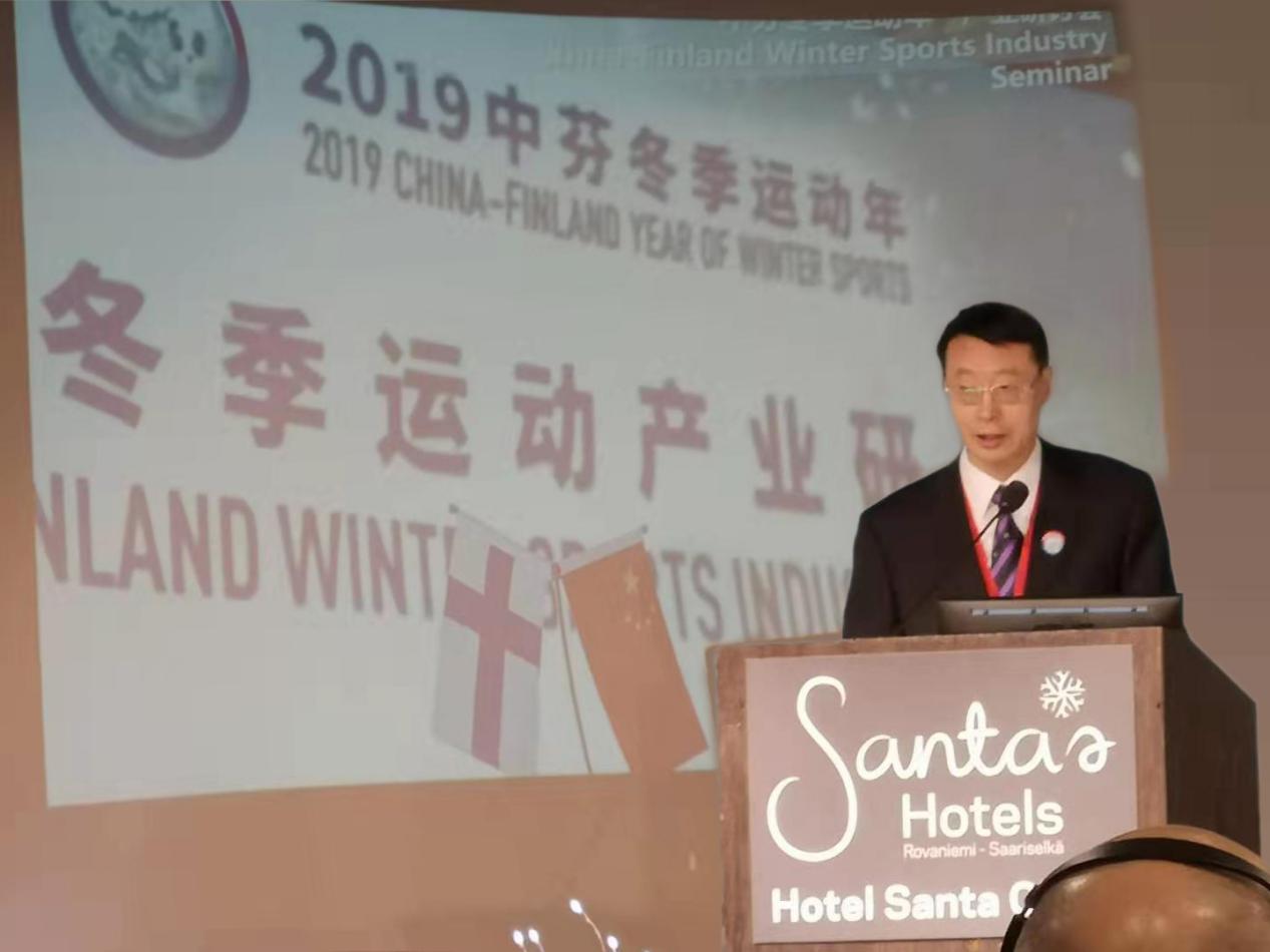国家体育总局体育经济司刘扶民司长出席会议并致辞。他指出,2019中芬冬季运动年是中国与其他国家举办的第一个以体育为主题的国家年,中芬双方围绕冰雪赛事运营、冰雪培训、冰雪场馆建设等多个领域,开展了多项产业对接活动,共签署20多项合作协议,目前很多合作成果已经落地,为促进两国冬季运动产业的共同发展发挥了积极作用。