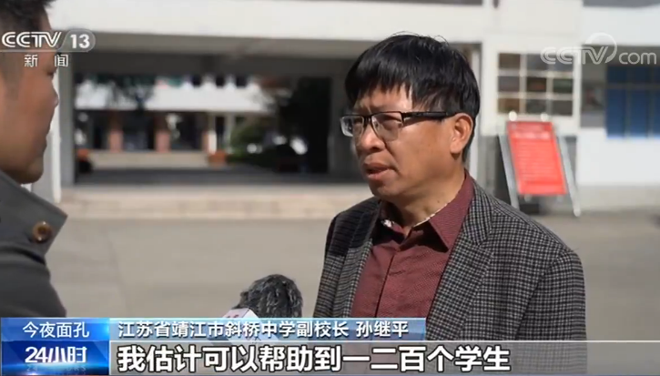 江苏省靖江市斜桥中学副校长 孙继平:五年的话,我估计可以帮助到一二百个学生。确确实实给我们学生生活上面带来了很大的帮助,对学习也充满信心。