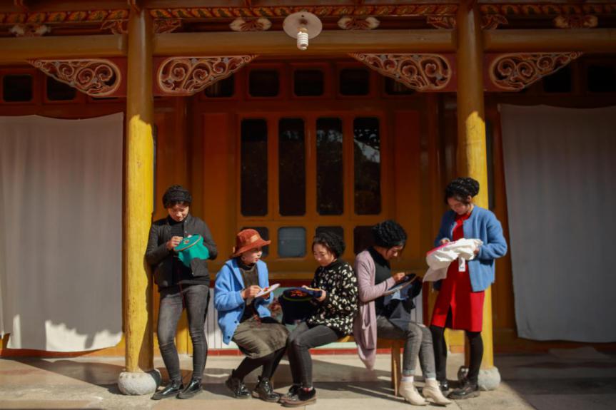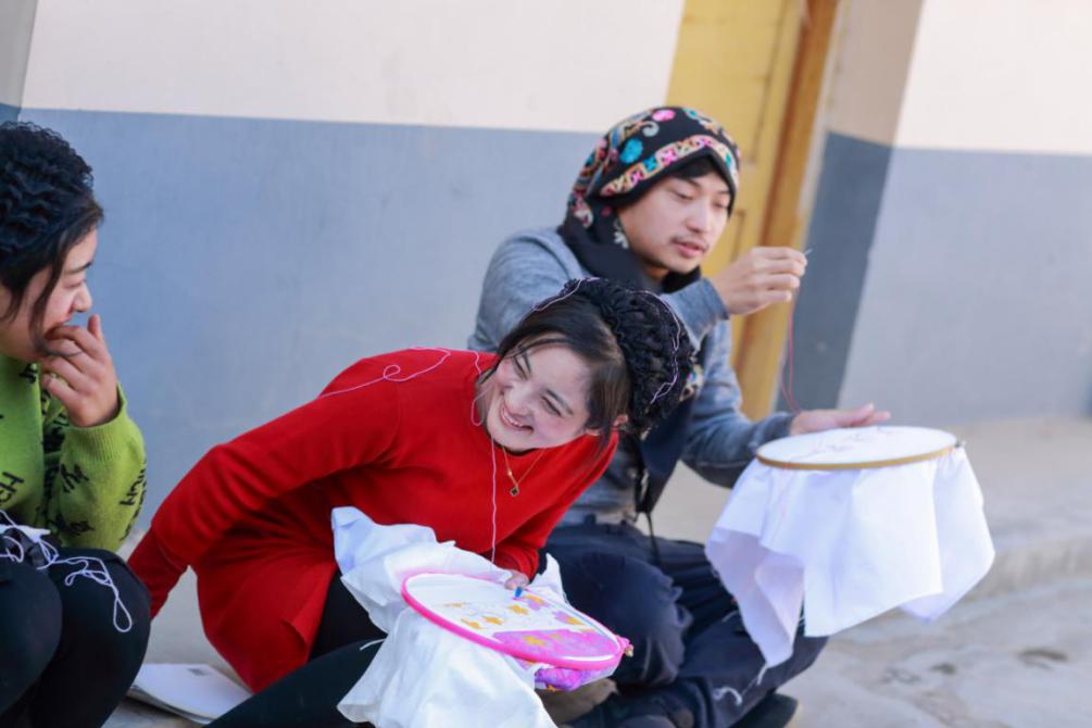 (小支真的有很耐心在跟姐姐们学习刺绣哦)