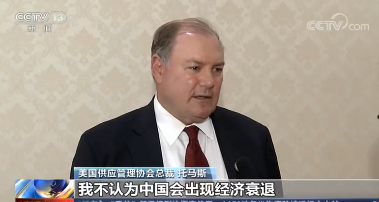 美国供应管理协会总裁 托马斯:我不认为中国会出现经济衰退,中国经济的发展是强劲的,“一带一路”将为中国带来新的市场。我相信中国经济能够很好地应对短期挑战,并继续保持增长活力。