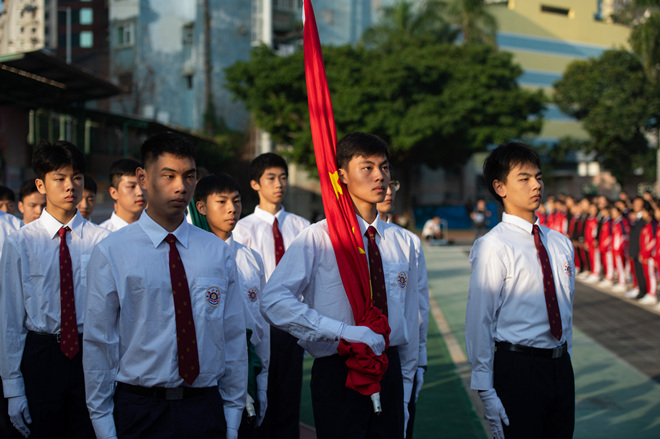 2019年11月18日,澳门濠江中学举行升国旗仪式。
