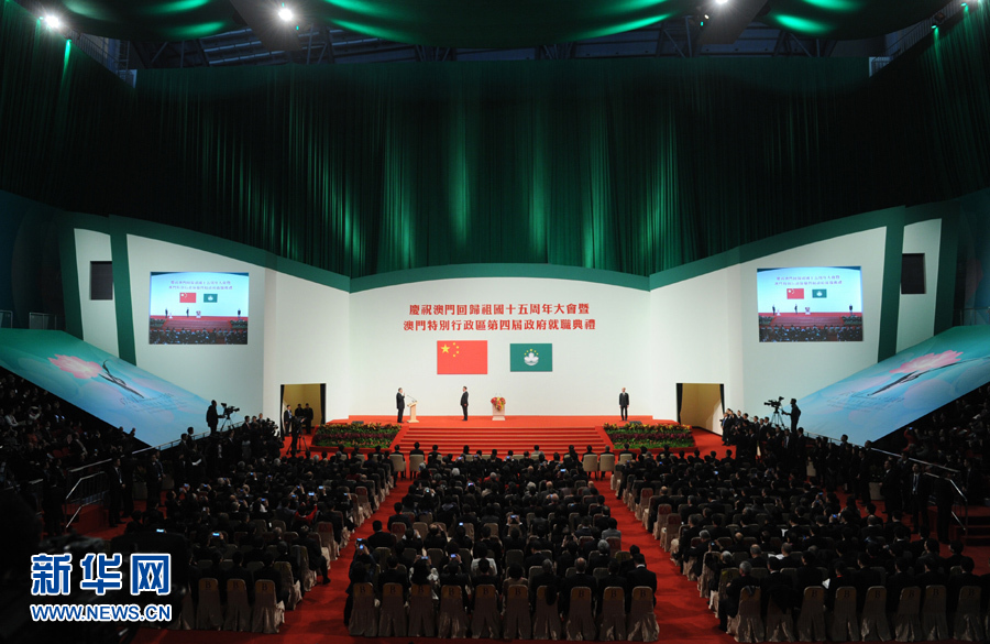 在庆祝澳门回归祖国15周年大会暨澳门特别行政区第四届政府就职典礼上,习近平强调,在新的历史起点上,要把澳门经济社会发展的良好局面巩固好,发展好,必须再接再厉、开拓进取,为澳门长期繁荣稳定打下更为坚实的基础。