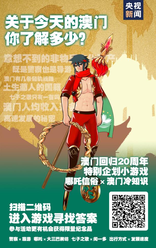 来,让我们一起来玩一个“找不同”的小游戏,找到不同,集齐装备,你不但能了解关于澳门的冷知识,还可以通过完成游戏,有机会获得中央广播电视总台新闻新媒体中心联合中国邮政推出的“澳门哪吒信俗”限量版纪念明信片。