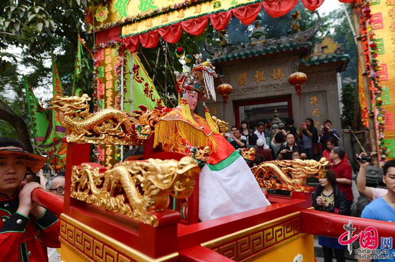 妈阁庙原称妈祖阁,是为纪念被尊奉为海上保护女神的天后娘娘而建。每年农历除夕和农历三月二十三日“天后”神诞,四方香客云集于此上香拜祀、叩首祈福,并举行丰富多彩的节目助兴,这时妈阁庙上紫烟弥漫,一派祥和,这就是澳门八景之一的“妈阁紫烟”的景色。妈祖是海峡两岸及全球华人共同敬重的海上女神,经岁月演绎而成的妈祖文化是中华民族优秀传统文化的重要组成部分,如今已形成一种国际文化现象。