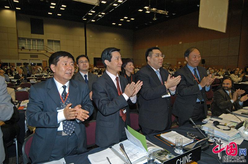 2005年7月,第29届世界遗产委员会会议在南非德班举行,独具中西文化糅合特色的“澳门历史城区”在大会上获准列入世界遗产名录,成为中国第31处世界文化遗产。图为申遗团队鼓掌庆祝,来自世界的肯定让他们切身感受到了文化自信和文化归属感。