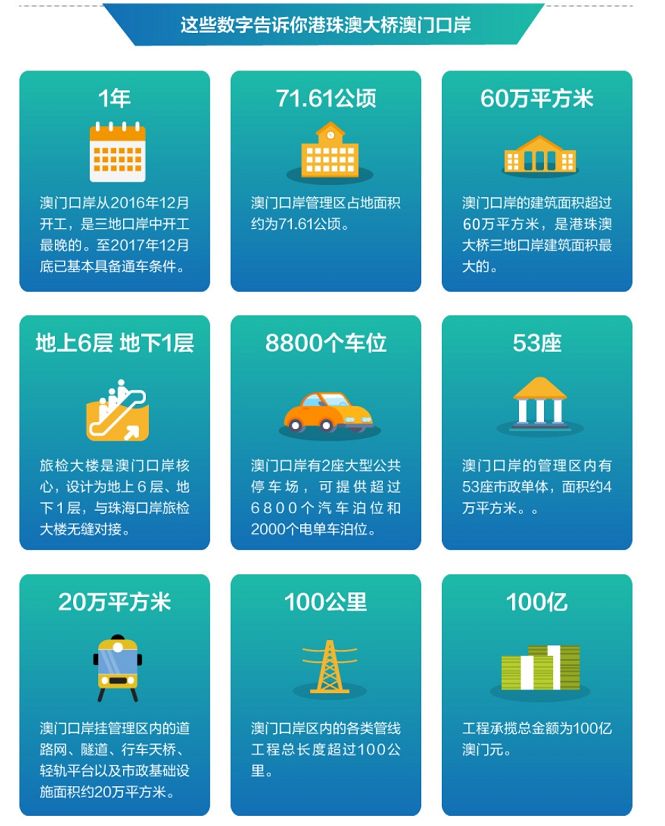 港珠澳大桥澳门口岸由中交集团承建,主要包括境内车库、旅检大楼、境外车库、市政及外围工程以及配套设施等四大主体部分。