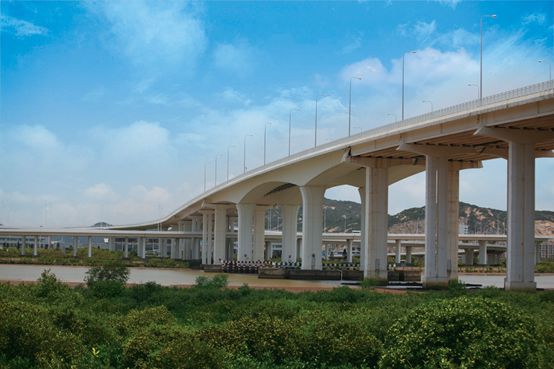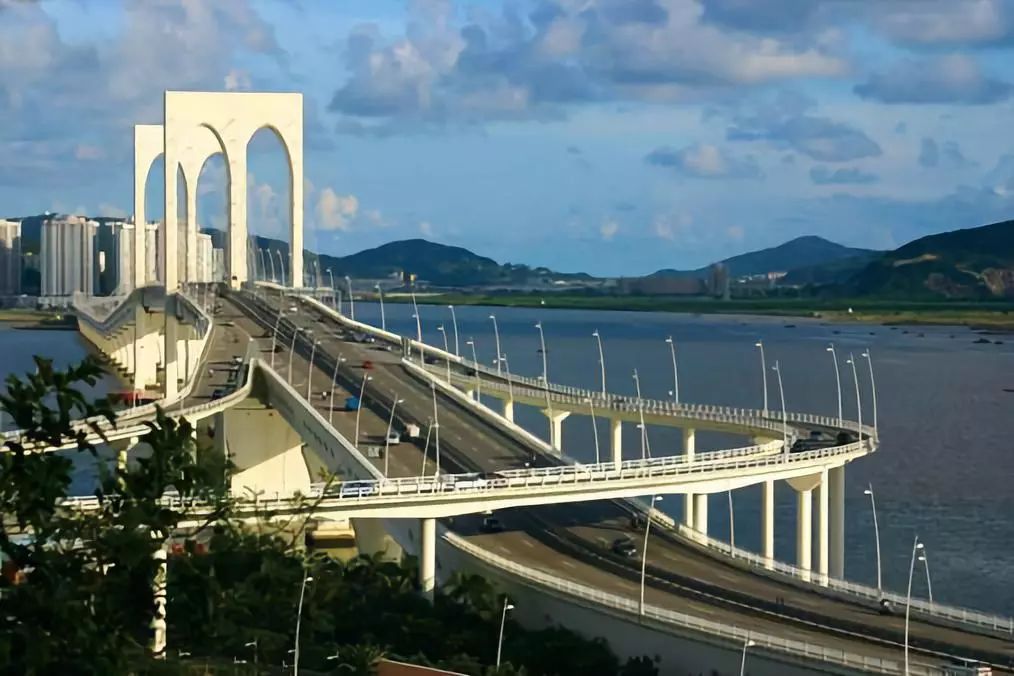 中国铁建承建的澳门西湾大桥,被收录为澳门特别行政区新版电子护照背景图,采用多项国际领先技术,是全球首座预应力混凝土双层主梁斜拉桥,主塔首创采用“M”造型,是澳门英文MACAO的首字母,也与澳门地标大三巴牌坊相像,寓意澳门三个岛紧密相联。