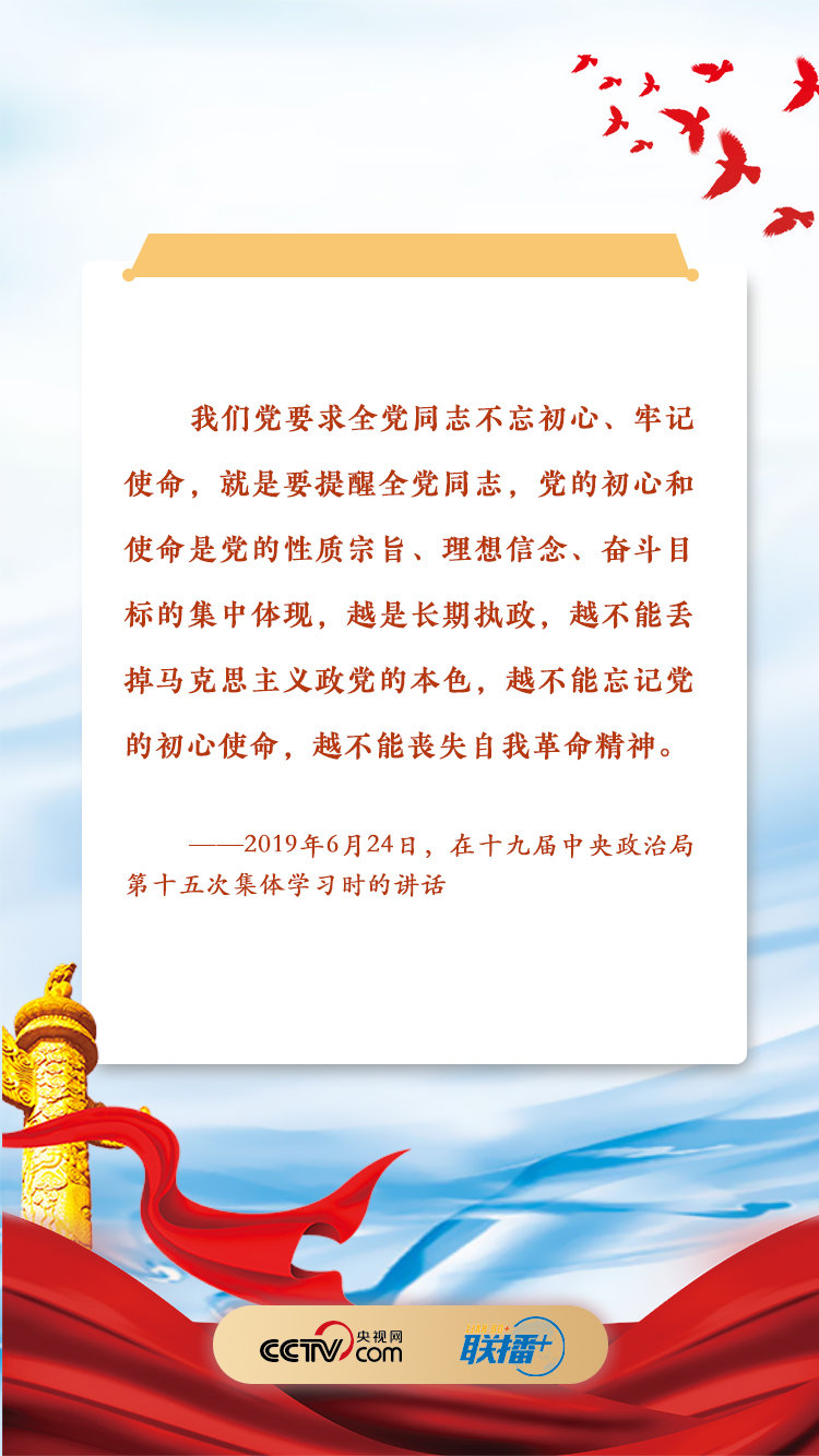 联播+ “为中国人民谋幸福,为中华民族谋复兴,是中国共产党人的初心和使命,是激励一代代中国共产党人前赴后继、英勇奋斗的根本动力。”