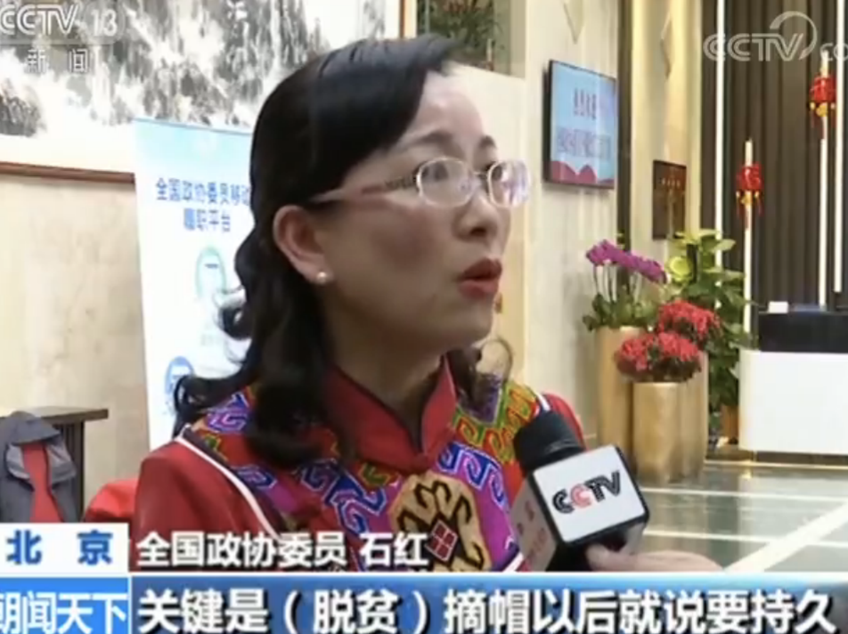 全国政协委员 石红:(脱贫)摘帽很容易,关键是(脱贫)摘帽以后要持久,但是(脱贫)摘帽以后这些扶贫工作队就离开了,怎么样要留下一只永不走的工作队,要把每一个村都有一支长效的工作队,保证老百姓能够长富久富,能够脱贫又不返贫。
