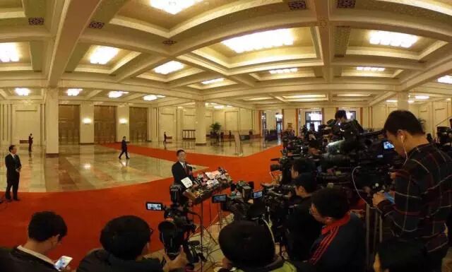 2016年3月16日,第十二届全国人民代表大会第四次会议在北京人民大会堂举行闭幕会。记者在人民大会堂部长通道采访。 (新华社记者王建华摄)