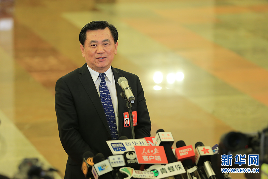 3月3日下午,全国政协十三届二次会议开幕会结束后,2019年全国两会“部长通道”在人民大会堂正式开启,部长们在这里直面热点,回应关切。图为中国民用航空局局长冯正霖接受采访。新华网/中国政府网 刘厦 摄