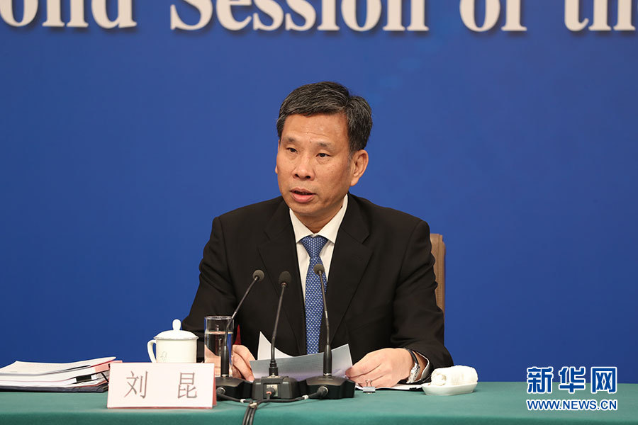 3月7日,十三届全国人大二次会议新闻中心举行记者会,邀请财政部部长刘昆,副部长程丽华、刘伟就“财税改革和财政工作”相关问题回答中外记者提问。这是刘昆在记者会上。 新华社记者李然摄