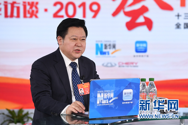 3月12日,全国人大代表、郴州市市长刘志仁做客新华网。新华网 李相博 摄