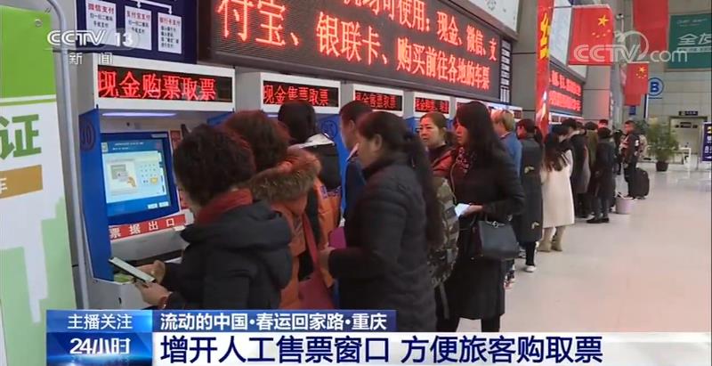 重庆北站南广场汽车站平时客流为每天约8000人次,随着春节的临近,客流量已增加到日均1.6万人次,是平时的一倍多。车站方把人工售票窗口从3个增加到13个,30台自助售取票机全部开放,并准备了200台应急运力。