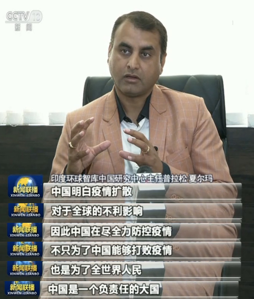 央视网消息(新闻联播):多国人士积极评价中国为抗击疫情采取的强有力措施并表示,中国的积极努力展现了一个负责任大国的担当。