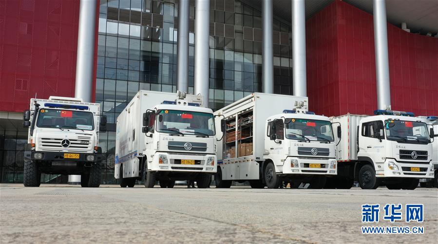 2月8日,在武汉客厅“方舱医院”医护人员出口处,工作车辆集结就绪(无人机拍摄)。 当日,武汉客厅“方舱医院”B区各项设施准备完毕即将启用。据了解,武汉客厅“方舱医院”由一处超大型城市文化综合体改建而成,用来接收新冠肺炎轻症患者,可容纳床位2000张。此前,“方舱医院”A区已投入使用。 新华社记者李贺摄