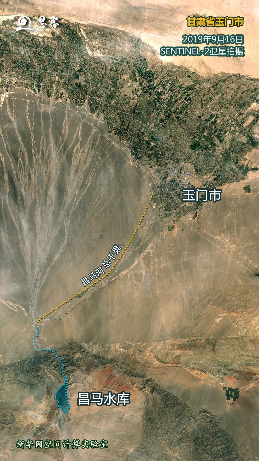 ▲图为甘肃省玉门市境内疏勒河流域昌马灌区。卫星资料来源:SENTINEL-2