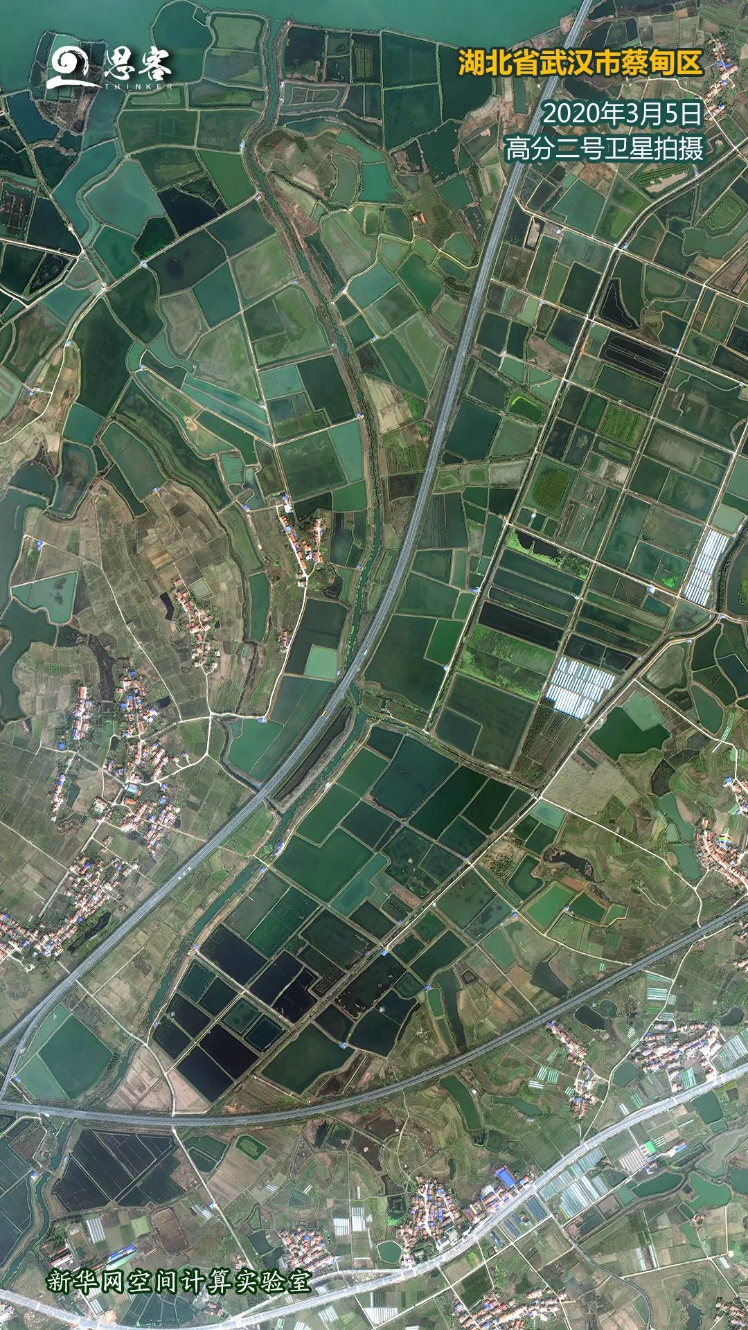▲图为武汉市蔡甸区五公村稻虾共作基地。卫星 资料来源:高分二号
