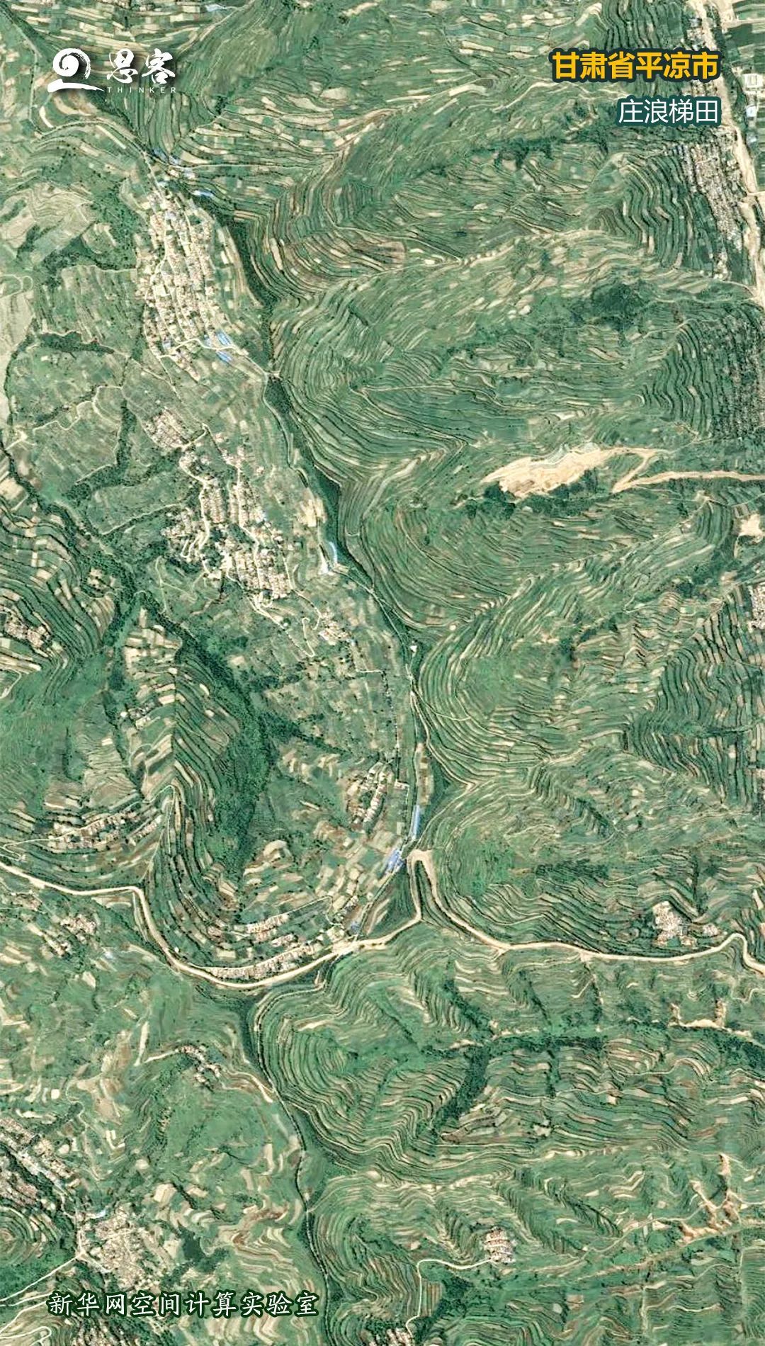 ▲图为卫星拍摄的位于甘肃省平凉市庄浪县的庄浪梯田,庄浪梯田被誉为“梯田王国”。卫星资料来源:天地图