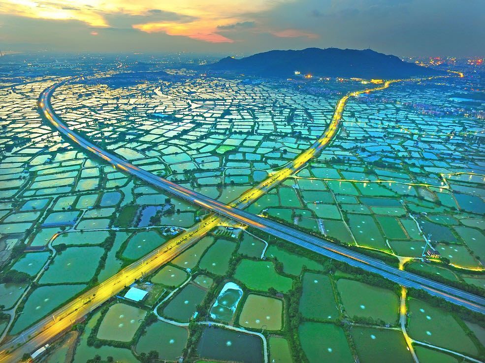 一望无际的 基塘 波光粼粼